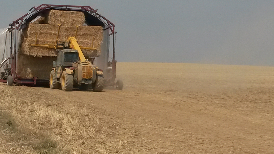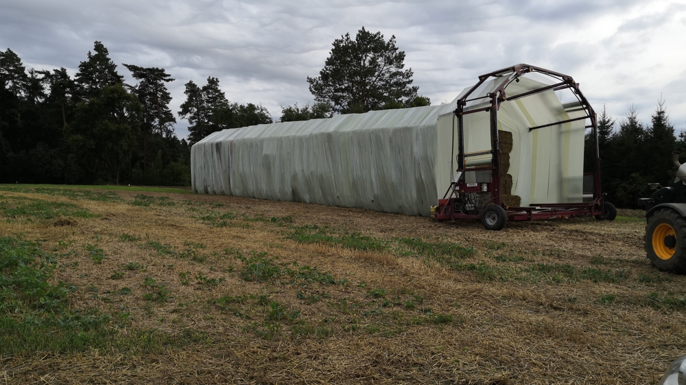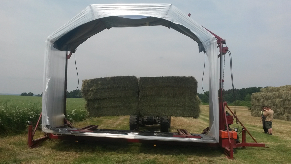Nabízíme balení stohů, kde používáme technologii, která umožňuje zabalit celý stoh sena, slámy, energetických plodin do dlouhého rukávu po devíti balících na sobě a v horní části jsou větrací kanály.